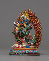 With our Compact Six-Armed Mahakala Statue, you can add a sign of protection and strength to your environment. The Tibetan Buddhist deity Mahakala is considered as a strong guardian and defender of the Dharma. This meticulously constructed statue, created utilizing machine molding processes, depicts this strong deity in a detailed and approachable manner.