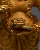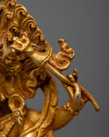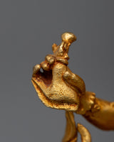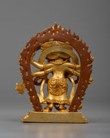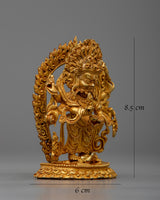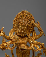With the help of our machine-made, six-armed Mahakala statue, enter the domain of heavenly protection and spiritual splendor. This figure, which was meticulously crafted on a copper canvas and lavishly plated in 24k gold, is a symbol of strength and transcendence.