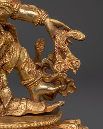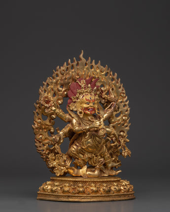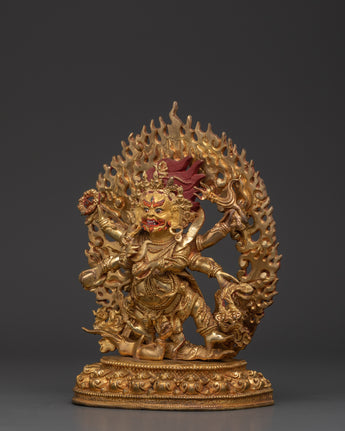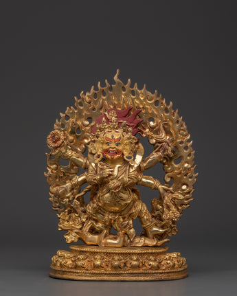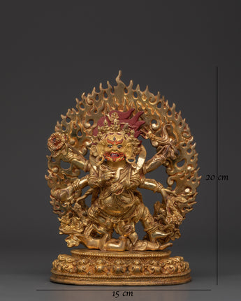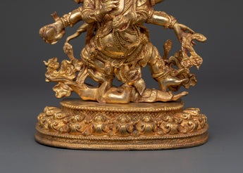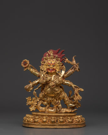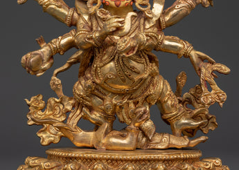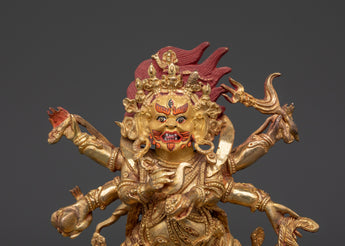 Handmade Six-Armed Mahakala Deity Statue | Traditionally Handmade Golden Sculpture