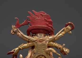 As a protector deity, Six-Armed Mahakala embodies the intense compassion necessary to guide practitioners on their spiritual journey. His wrathful appearance serves as a reminder of the ability to overcome ignorance and hardship. This statue serves as a spiritual focus for meditation, protection, and blessings, instilling courage and commitment. It is an excellent gift for individuals devoted to spiritual practice and seeking divine guardianship.