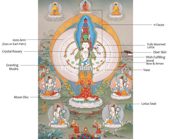 1000 Armed Chenresig Thangka | Avalokiteshvara Deity Artwork | Bodhisattva Art