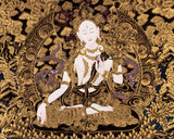 24K Gold White Tara Thangka | Female Bodhisattva | Tibetan Traditional Painting