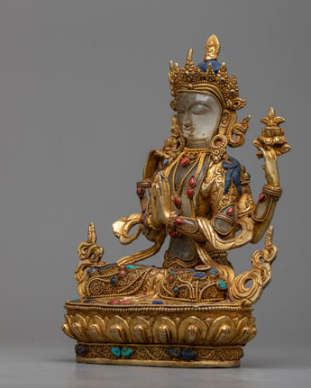 4 Arm Chenrezig Statue | Handmade Art for Mindfulness and Inner Peace