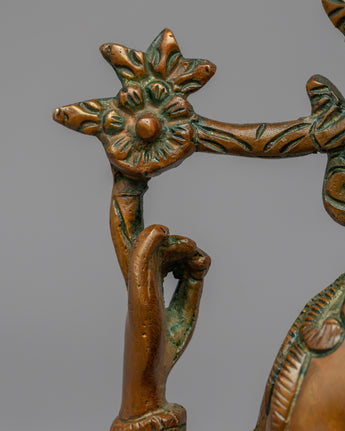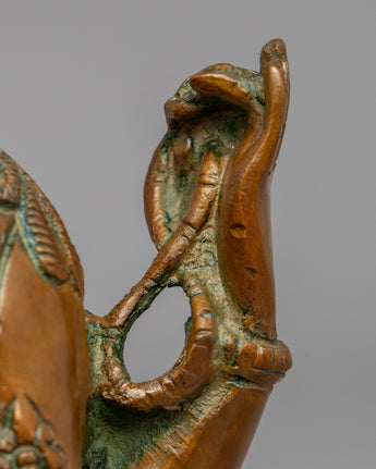 The Chenrezig statue is a magnificent handcrafted piece of art made of brass. The statue depicts the bodhisattva Chenrezig, also known as Avalokiteshvara, who is revered in Buddhism as a compassionate deity who hears all beings' cries and provides assistance and guidance. The statue captures the essence of Chenrezig's serene and compassionate presence, with intricate details and a beautiful finish that demonstrates the artisan's skill. This Chenrezig statue, whether used for spiritual practice or as a decorative piece, is sure to bring a sense of peace and beauty to any space.