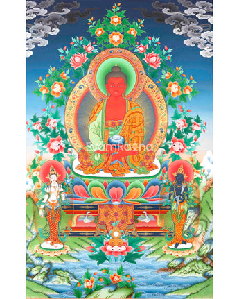 Amitabha Buddha Followed By Other Bodhisattvas | Tibetan Buddhist Canvas Art