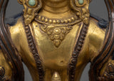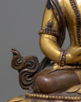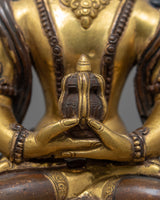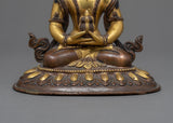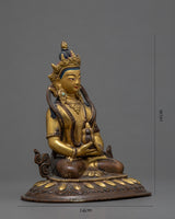 The Bodhisattva Amitayus Statue symbolizes the Buddha of Long Life. The vase he holds in his lap, which contains amrita, the nectar of immortality, symbolizes longevity. Amitayus is an incarnation of Amitabha, a buddha who claimed to be able to transfer his followers to the Pure Land when they die. They are liberated from the samsara cycle and reach enlightenment.