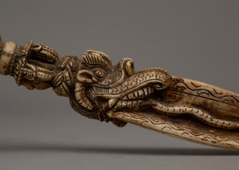 Our Genuine Phurba with Stand, carefully carved by hand on ethically sourced bone , will transport you to the serenity of old Tibet. This Phurba is adorned with a face painted in 24 carat gold, symbolizing centuries of cultural value and custom.