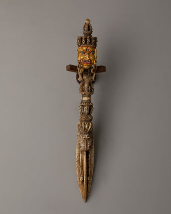 Phurba is a triple-sided Tibetan Dagger, and it is used for ritual purposes. Phurba's primary purpose is to restrain evil and harmful occult forces and fight life obstacles. It can also be used to convert all the negative energies into positive forces. It is believed in Nepalese and Tibetan cultures that these daggers hold magical power that can erase negative emotions like violence, hatred, and other aggressive characteristics that can be held in place by the weapon’s blade.