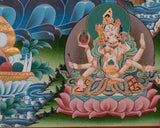 Authentic White Tara Thangka | Feature 5 Buddhas, Amitayus, and Namgyalma: