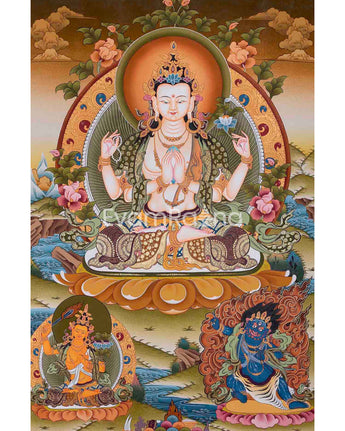 Avalokiteshvara Chengrezig Thangka Painting | Deity Of Compassion