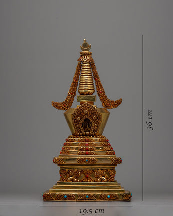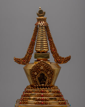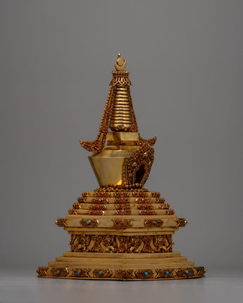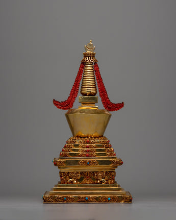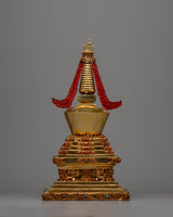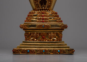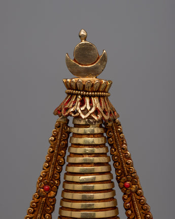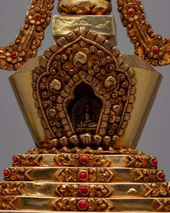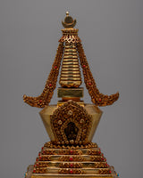Beautiful Gold Plated Tibetan Stupa | Spiritual Ornament for Home and Altar