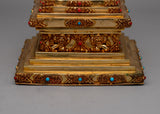 The stupa is transformed into a visual feast with the addition of Turquoise and Coral stone inlays, enthralling the observer with its vivid hues and complex patterns. Because each Artificial Coral, Turquoise stone is set and picked with care, the stupa is endowed with spiritual energy and symbolic meaning. It acts as a reminder of the profound teachings of Tibetan Buddhism and the path to enlightenment as a center of devotion and meditation.