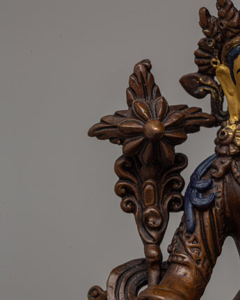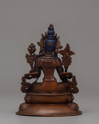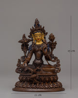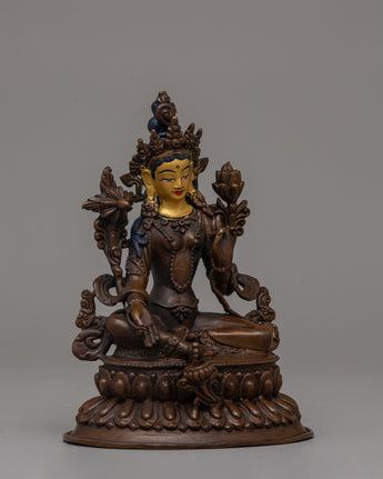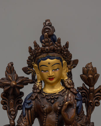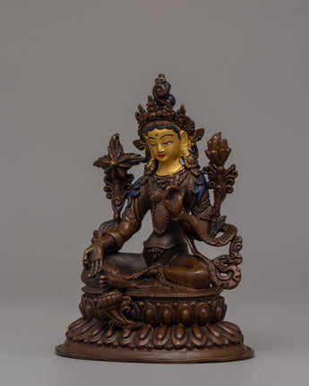 Beautiful Green Tara Statue | Oxidized Copper with Gold Face