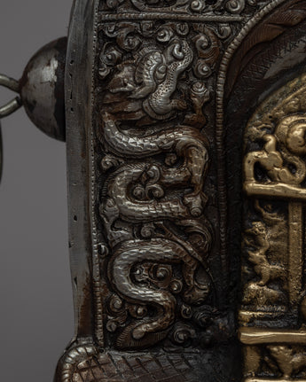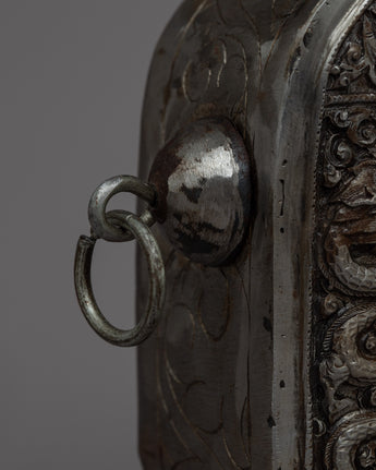 This Ghau Box serves piece of art that captures the spirit of Tibetan spirituality. It is a testament to the rich history of Tibetan craftsmanship and the deeply ingrained spiritual traditions that have mesmerized hearts for centuries, whether you use it to store holy relics, jewelry, or as a decorative item. Bring this special fusion of art and spirituality home with you and incorporate it into your life's journey.