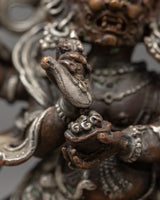 We have exquisitely hand-painted the Black statue of Six-Armed Mahakala and elegantly crafted by machine in the traditional Himalayan Art of Nepal. The deity depicted standing on a top of a sun disc lotus seat looks wrathful in expression. We have adorned and embellished the ornaments with precious jewels, which is mesmerizing. You can use this art in different Buddhist rituals and even in your daily meditational activity. We assure you that the materials used in this statue are of high quality and will last for many years without damage or scratches.