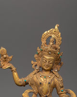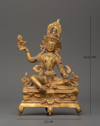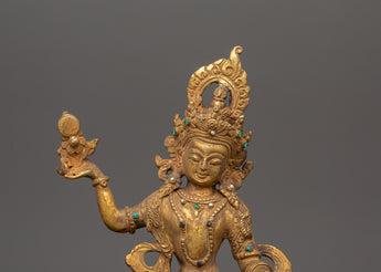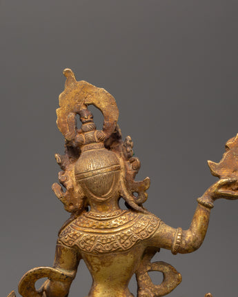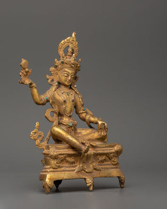 The Bodhisattva sculpture conveys peace and divine presence through its beautiful workmanship and graceful pose. The gold plating represents the purity of awakened wisdom, and the antique finish exudes a sense of timelessness. Whether improving your meditation practice or decorating your shrine, this precious figurine brings peace, protection, and inspiration to your spiritual journey.