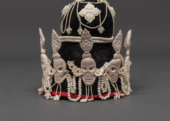 The Bone Ornament Set is a traditional and culturally significant ensemble made of sustainably obtained buffalo bone, representing the rich heritage of Tibetan and Himalayan handicrafts. This set, recognized for its elaborate design and spiritual connotation, is utilized in Buddhist rituals, ceremonial practices, and traditional Tibetan dance performances. Each component in the set, including the crown, choker necklace, armlets, apron, long necklace, and earrings, is beautifully created, demonstrating artisanal skills passed down through generations. The natural bone material represents strength, protection, and an ancestral link, making it more than just an adornment, but a sacred treasure valued for its spiritual essence and cultural significance.
