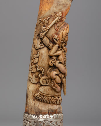 The White Metal Bone Stamp is a harmonic mix of craftsmanship and reverence, delicately made to honour tradition and spirituality. This elegant item is handcrafted with care on a base of spotless white metal and features ethically sourced buffalo bone, assuring a link to nature and respect for all beings. It is adorned with a delicately carved deity on bone, capturing the sense of divine grace and spiritual devotion.