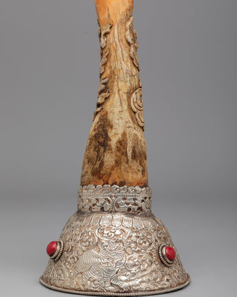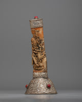 Each detail on this stamp offers a story of craftsmanship and cultural legacy, eliciting admiration and respect. With a coral stone elegantly inlaid, it emanates dynamic energy and energy, representing the interdependence of all living beings. The White Metal Bone Stamp, whether used ceremonially or displayed as a sacred item, serves as a reminder of the natural world's great beauty and spirituality, as well as the divine's timeless wisdom.