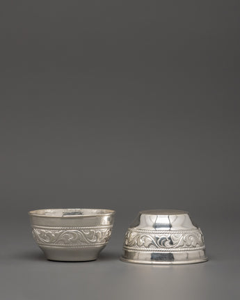 Handcrafted Pure Silver Water Offering Bowl Set | Ritual & Meditation Decor