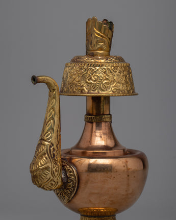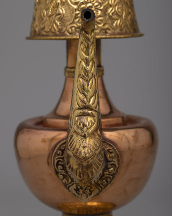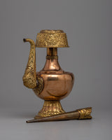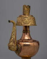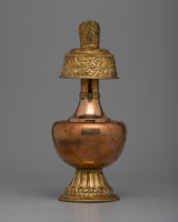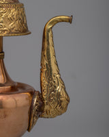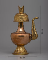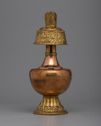 This vase, which appeals to both practitioners and enthusiasts, embodies the spiritual significance of Tibetan traditions despite not being handmade. The combination of brass and copper gives your altar a visually appealing and culturally rich touch, perfectly balancing modern and traditional design elements.