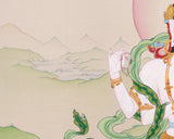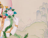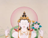 This Buddha Avalokiteshvara Thangka Painting depicts the compassionate and enlightening deity in a traditional Thangka style. Perfect for meditation and spiritual practice, this painting brings serenity and wisdom to any space. Hand-painted with vibrant colors and intricate details, it is a beautiful and meaningful addition to any home.