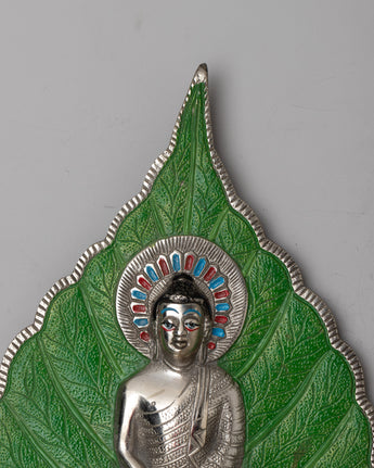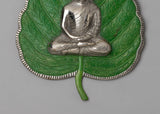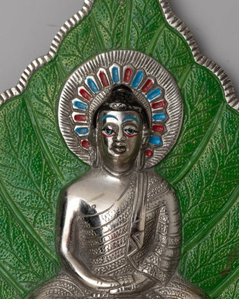 Experience the beauty and grace of the White Metal Buddha Leaf, a masterfully produced white metal piece with a subtle silver finish on the deity that accentuates its fine features. The Buddha figure in this unique artwork is elegantly embossed on a base shaped like a leaf, signifying the innate relationship between spirituality and the natural world.