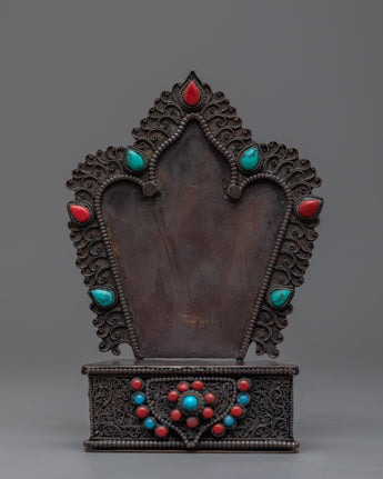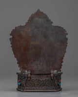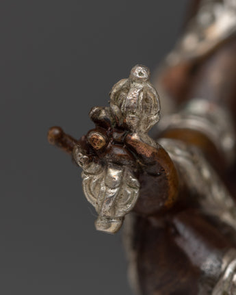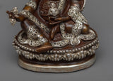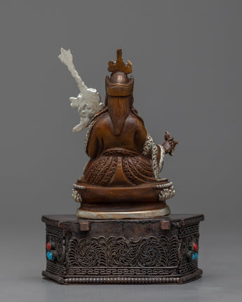 This Guru Rinpoche Buddha Mini Statue, standing gently at 5.7 inches, is more than just an adornment. It's an elegant manifestation of your spiritual ideals, expertly crafted to instill peace in your own settings. This statue, made of oxidized copper and silver-plated for a magnificent sheen, is both beautiful and long-lasting.