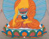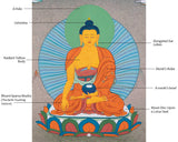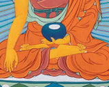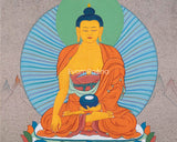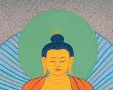 Buddha Shakyamuni Thangka is a profound and aesthetically rich, and serves as a focal point for meditation and spiritual contemplation. This particular thangka, measuring 12 inches, is crafted with meticulous attention to detail, ensuring its iconographic accuracy according to traditional Buddhist scriptures and iconography.