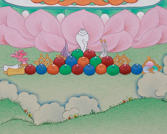 As requested for consecrations/blessings, we can take thangka to Monasteries/Rinpoches from nearby Boudha Stupa. We kindly ask you to offer $50 for the monasteries for blessings/consecration services.
