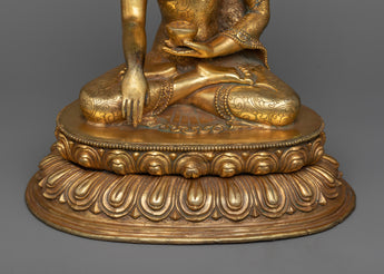 Immerse yourself in the heavenly presence of the Buddha Shakyamuni Sadhana Statue, which was painstakingly carved on copper. Each delicate curve and meticulous detail demonstrates the craftspeople' dedication while echoing the deep principles of compassion and enlightenment. Its opulent electro gold plating creates a celestial atmosphere over any environment, evoking serenity and devotion while radiating the golden glow of spiritual purity.