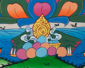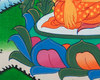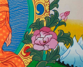 Our thangka is a handpainted Tibetan art done using traditional methods. It is a unique piece created using genuine 24K gold and natural stone colorsbuddha