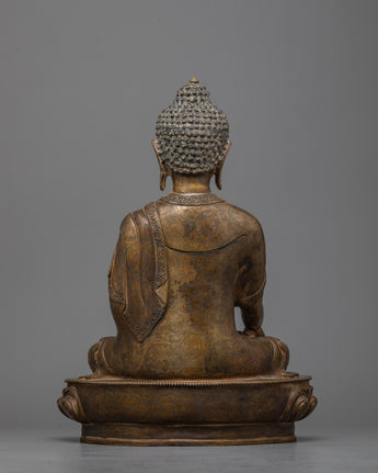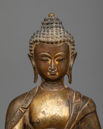 Introducing the Shakyamuni Buddha Statue, an exquisite work of devotion and artistry. This statue, which is handcrafted on a copper body and beautifully gilded in 24k gold, represents enlightenment and heavenly grace. Its 33cm height demands respect and attention, evoking introspection and introspection.
