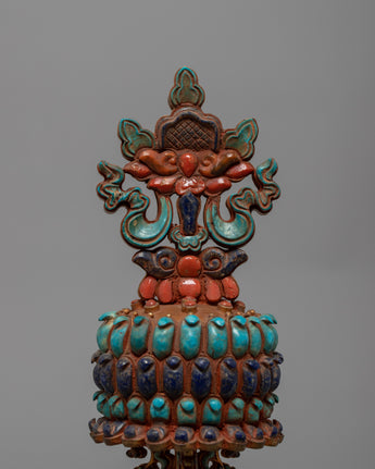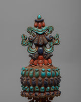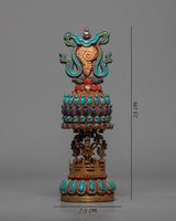 Our hand-carved Buddhist 8 Auspicious Symbols are composed primarily of copper and precious stones. This set includes lovely Ashtamangala sculptures representing growth and wealth. These Buddhist 8 Auspicious Symbols will make a wonderful gift for your friends, family, and yourself.