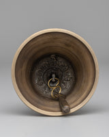 This copper body Buddhist Bell & Vajra Set includes an 18 cm bell (ghanta) and an 11 cm vajra (dorje), which are essential ritual elements in Vajrayana Buddhism, representing the union of wisdom and compassion on the path to enlightenment. The bell is 18 cm tall and 9.5 cm broad, weighing 0.408 kg, while the vajra is 3 cm high and 11 cm wide, weighing 0.138 kg. Both are made of excellent craftsmanship. Their combined weight of 0.546 kg provides balance and significance to meditation or sacred areas.