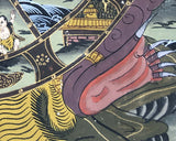 Thangka do not have a varnish or surface treatment like western paintings do to protect them. It is impossible to clean a thangka whose surface has gotten damaged or discolored by smoke or oil. It is crucial to make an effort to keep the delicate surface from being harmed.