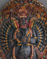 The Buddhist Kapala Skull Cup is a powerful tantric ritual vessel deeply rooted in Tibetan Vajrayana tradition, symbolizing the transformation of base desires into enlightened awareness. Expertly crafted from brass, acrylic color, copper, and adorned with artificial turquoise and coral stones, this cup combines artistry with spiritual significance. Measuring 14.5 cm tall and 15.5 cm in diameter, it offers a substantial presence while weighing just 0.75 kg. Traditionally used in high tantric rites, the Kapala serves as an offering bowl filled with sacred substances like wine or grain, making it an essential tool for practitioners seeking to deepen their spiritual practice and connection to divine energies. Owning this exquisite piece invites a profound sense of reverence and transformation into your ritual space.