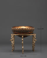 The Kapala set holds the nectar used in higher esoteric rituals. It offers liberation to gods and deities to ensure their devotion. The offerings are said to be transformed into the Wisdom Nectar, a liquid form of the deity's Enlightened Mind.