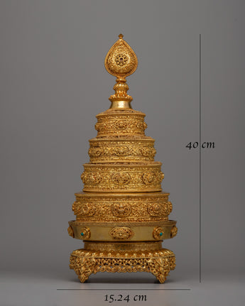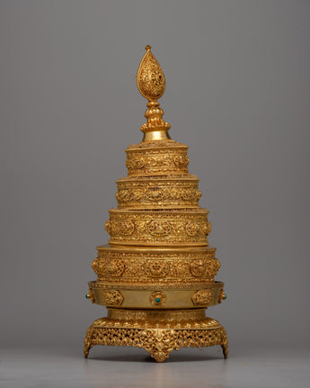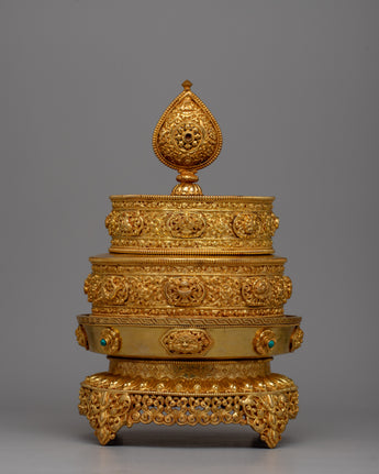 Savor the peace and spiritual grace of our Buddhist Mandala Offering Set, carefully carved by hand to uphold holy customs and enhance your spiritual journey. Each piece in this set is exquisitely crafted from fine copper and lavishly plated in gold, lending an air of reverence and divine beauty. As you do the profound act of offering, let yourself be carried away by the mandala's elaborate patterns and spiritual symbolism.
