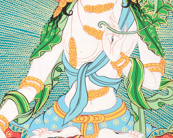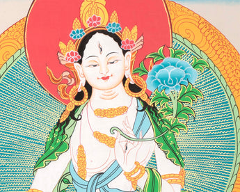 Buddhist White Tara Thangka | Handpainted Tibetan Art | Religious Wall Hanging Decor