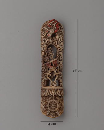 The Citipati's skeletal figures represent liberation from attachment, while the intricate detailing reflects the deep spiritual roots of this artifact. At just 16 cm in height and 4 cm in width, its compact design is perfect for any altar or sacred space. Lightweight yet sturdy at 0.060 kg, it is easy to handle during rituals or place as a meaningful décor piece. Whether you're a practitioner, collector, or someone seeking a spiritual gift, this carving serves as a gateway to mindfulness and a deeper connection to Buddhist philosophy.