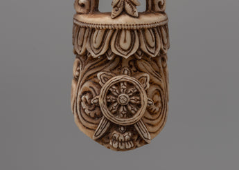 This Buffalo Bone Hand-Carved Citipati is a stunning representation of the "Lord of the Cemetery," intricately crafted by skilled Himalayan artisans. The Citipati, depicted in a dynamic skeletal dance, serves as a poignant reminder of life's impermanence and the inevitability of deathcore tenets of Tibetan Buddhism. Made from ethically sourced buffalo bone, this piece embodies the spiritual and cultural significance of traditional Buddhist teachings, making it a perfect addition to your altar, shrine, or sacred space.