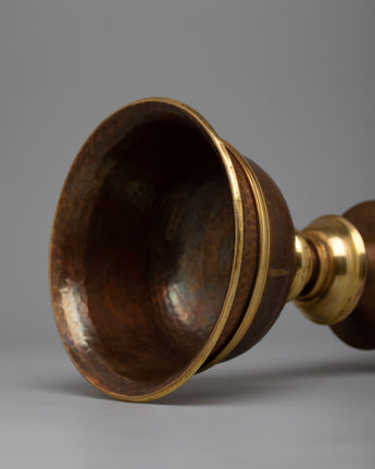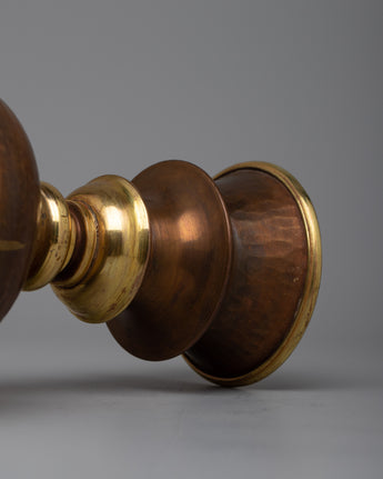 These butter lamps, which are made with great devotion, capture the spirit and customs of Nepal. The elaborate decorations on the oxidized copper bodies reflect the spiritual depth of Nepalese culture, while the bodies themselves radiate a rustic appeal. Whether you utilize these lights for rituals or as ornamental elements in your meditation space, they bring blessings from above and enlightenment to your surroundings.