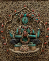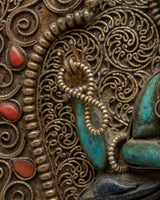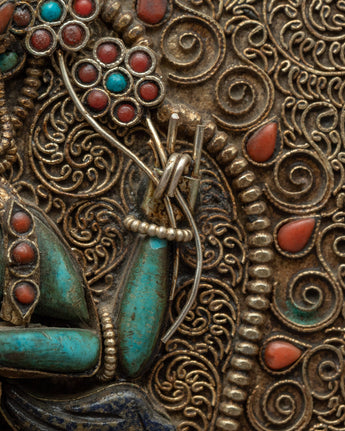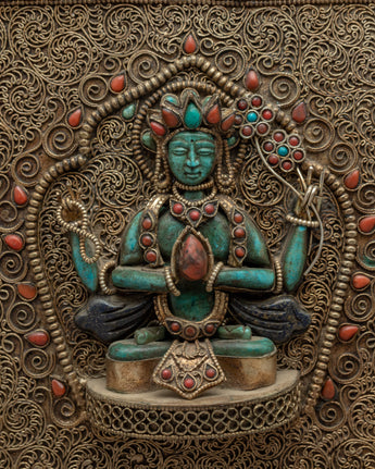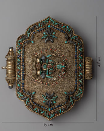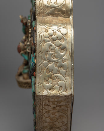 Handmade Chenresig Ghau Prayer Box | Gemstones Inlaid Chenrezig Handcrafted Ghau Meditation Box