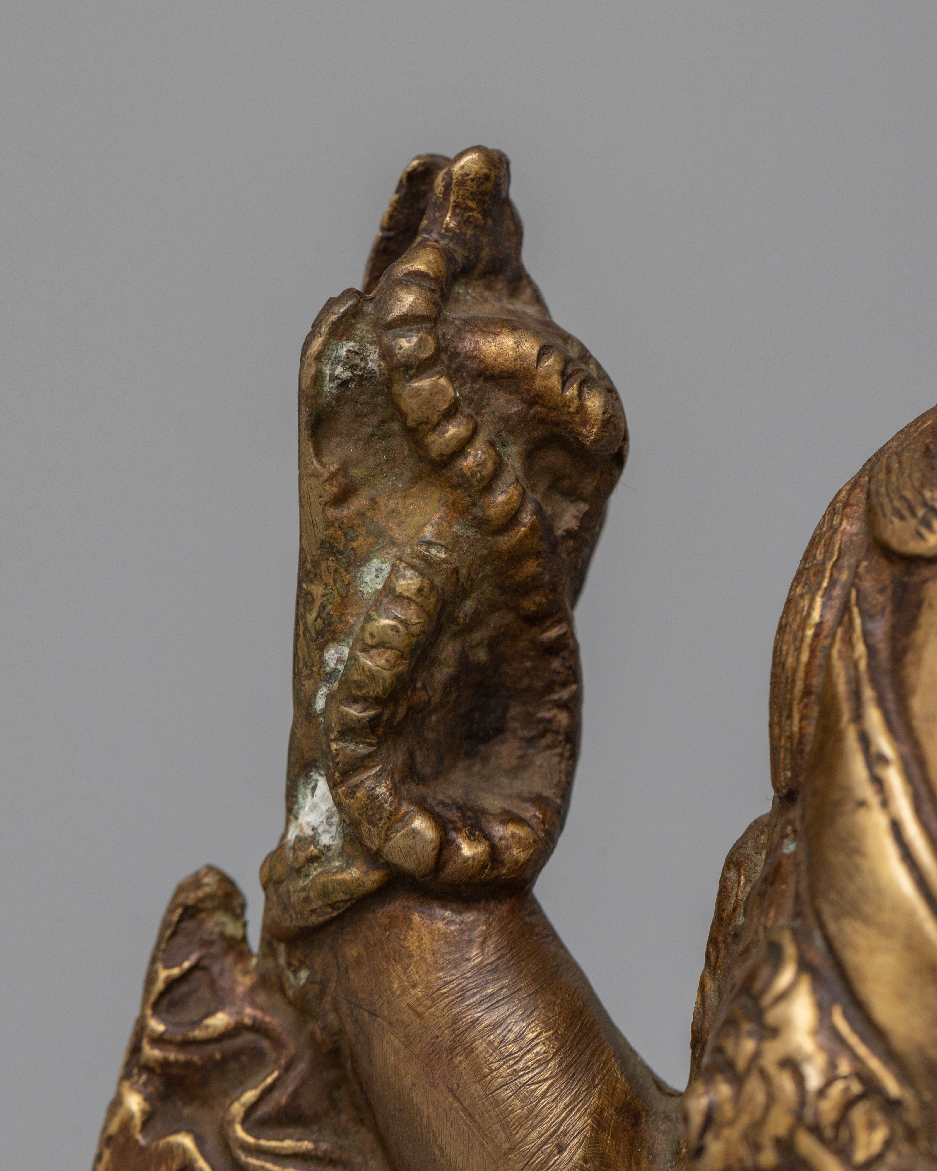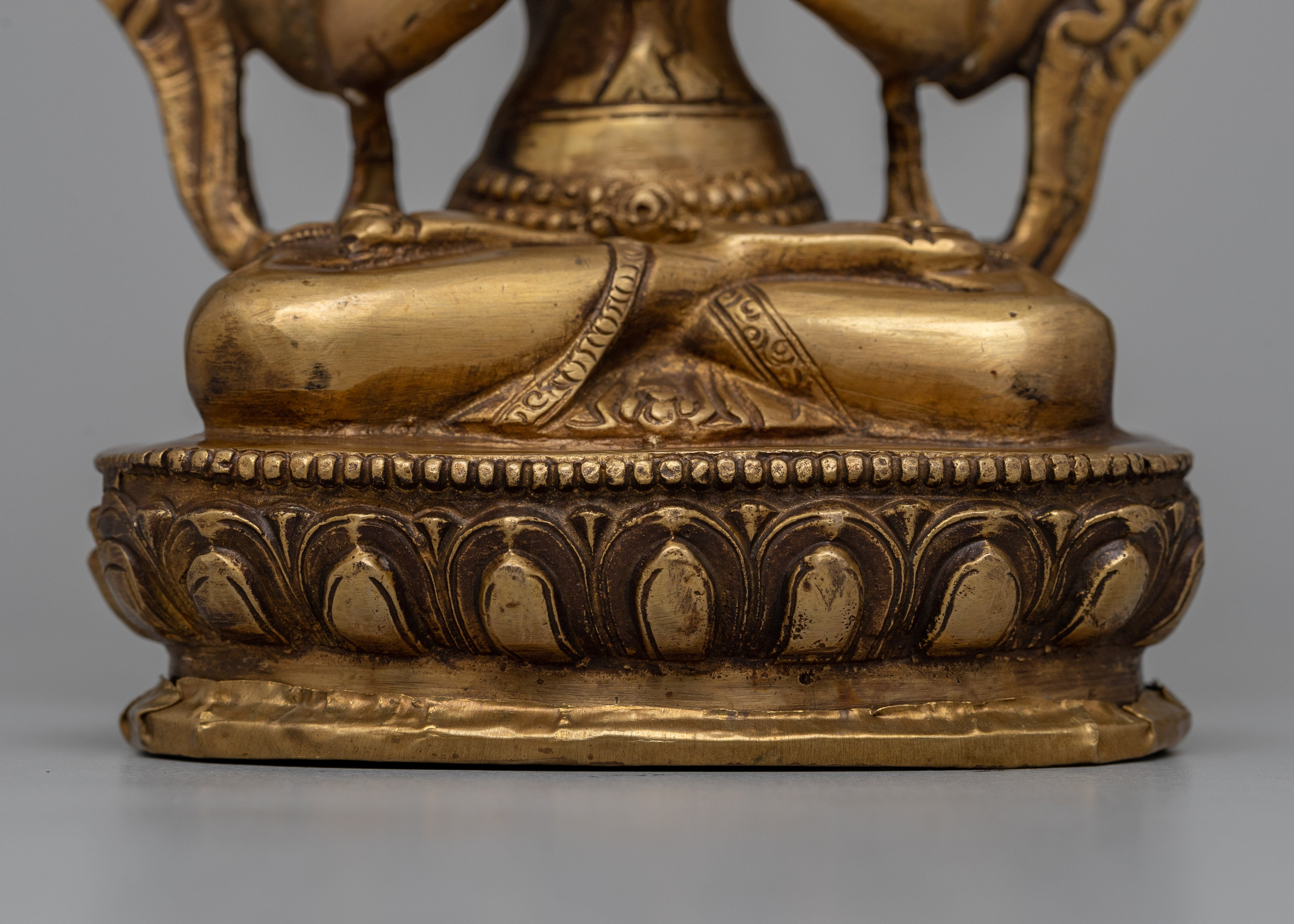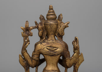 At 21.5 cm tall, the Chenrezig Charm Statue is a mesmerizing representation of spiritual grace and compassion. This handcrafted figure, which is constructed entirely of brass and has been carefully detailed, has a timeless charm that appeals to both collectors and fanatics.