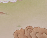 Created on high-quality cotton canvas, this hand-painted thangka of Chenrezig, the Compassion Buddha, features vibrant colors made from finely ground minerals like lapis lazuli, malachite, and cinnabar. The genuine 24K gold highlights the details, adding depth and spiritual significance to the artwork. Painted in the traditional Karma Gadri style, known for its soft landscapes and elegant composition, this thangka combines skilled workmanship with devotional intent. It's a powerful painting for spiritual practice or sacred décor.