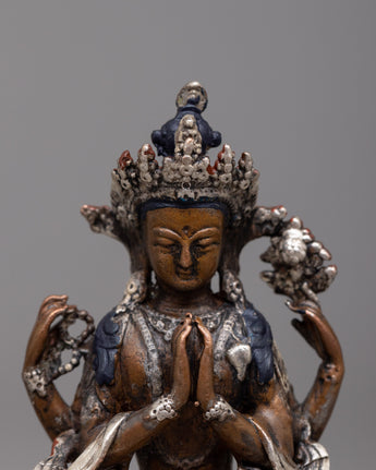 Chenrezig Oxidized Copper Statue | Sacred Representation of the Bodhisattva of Compassion
