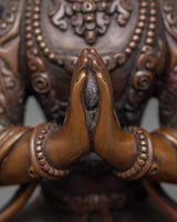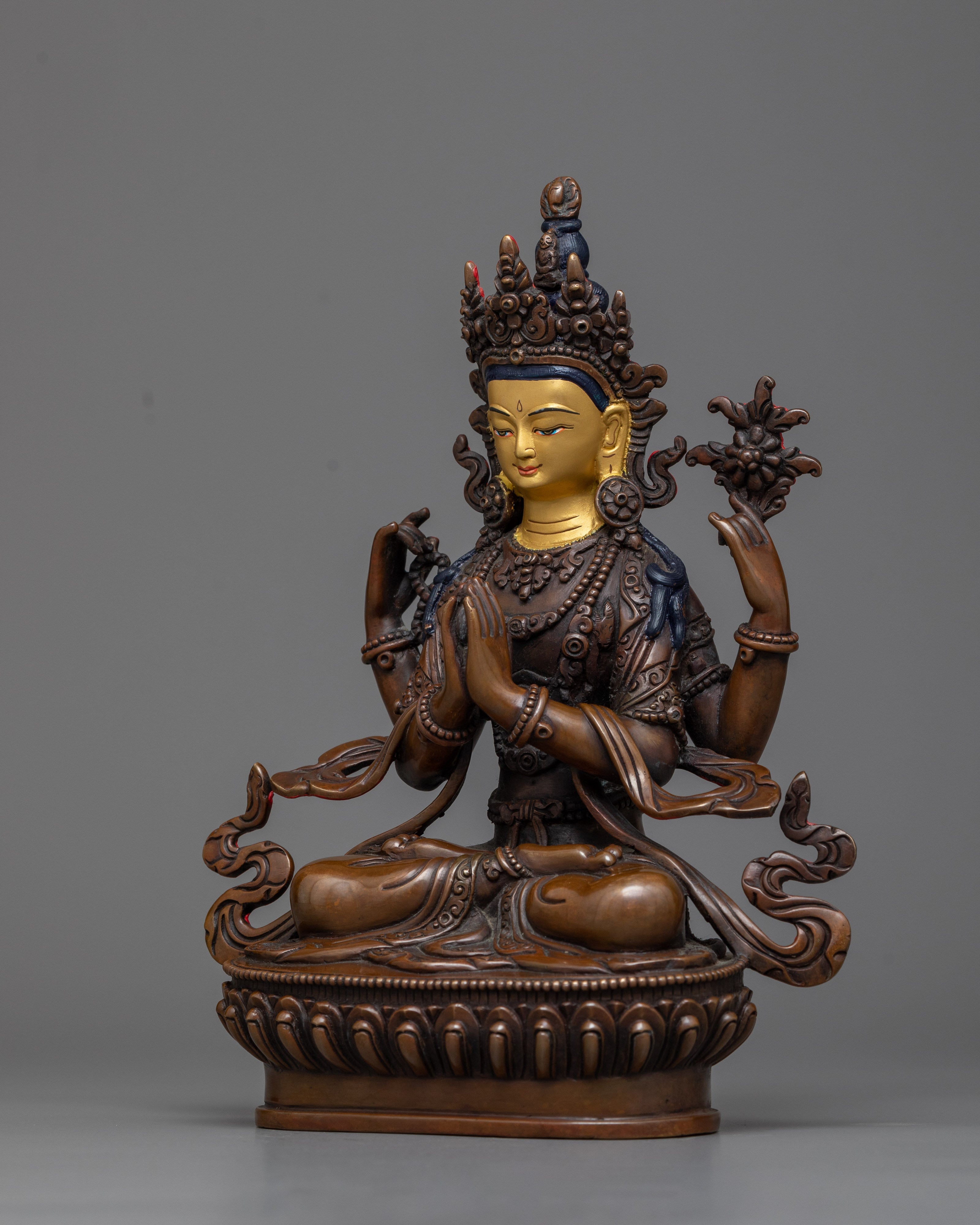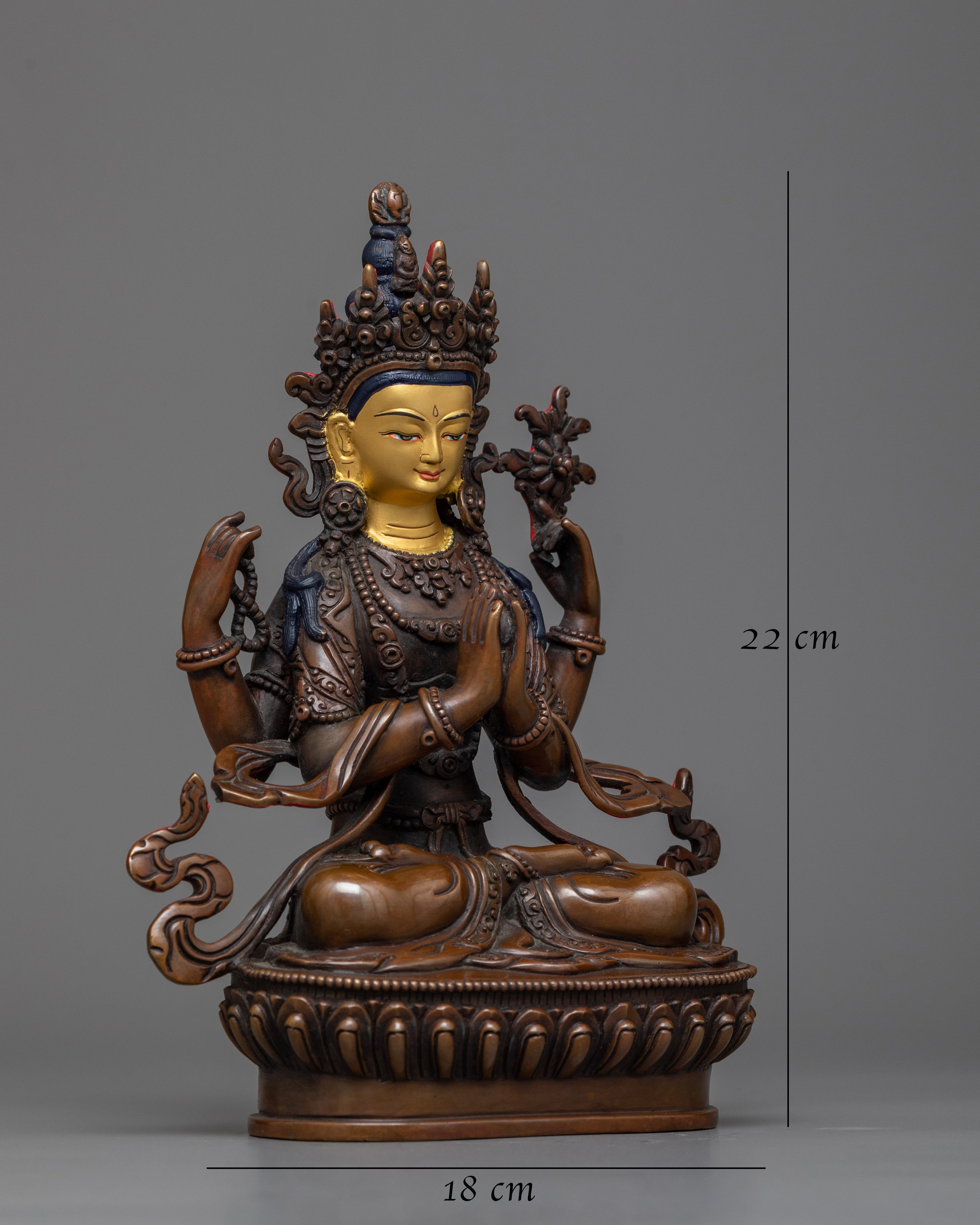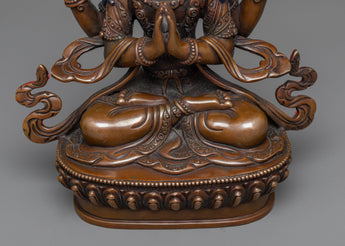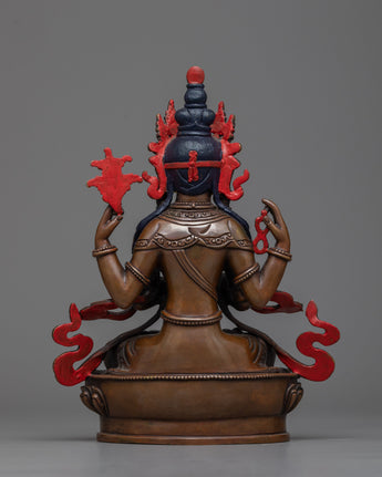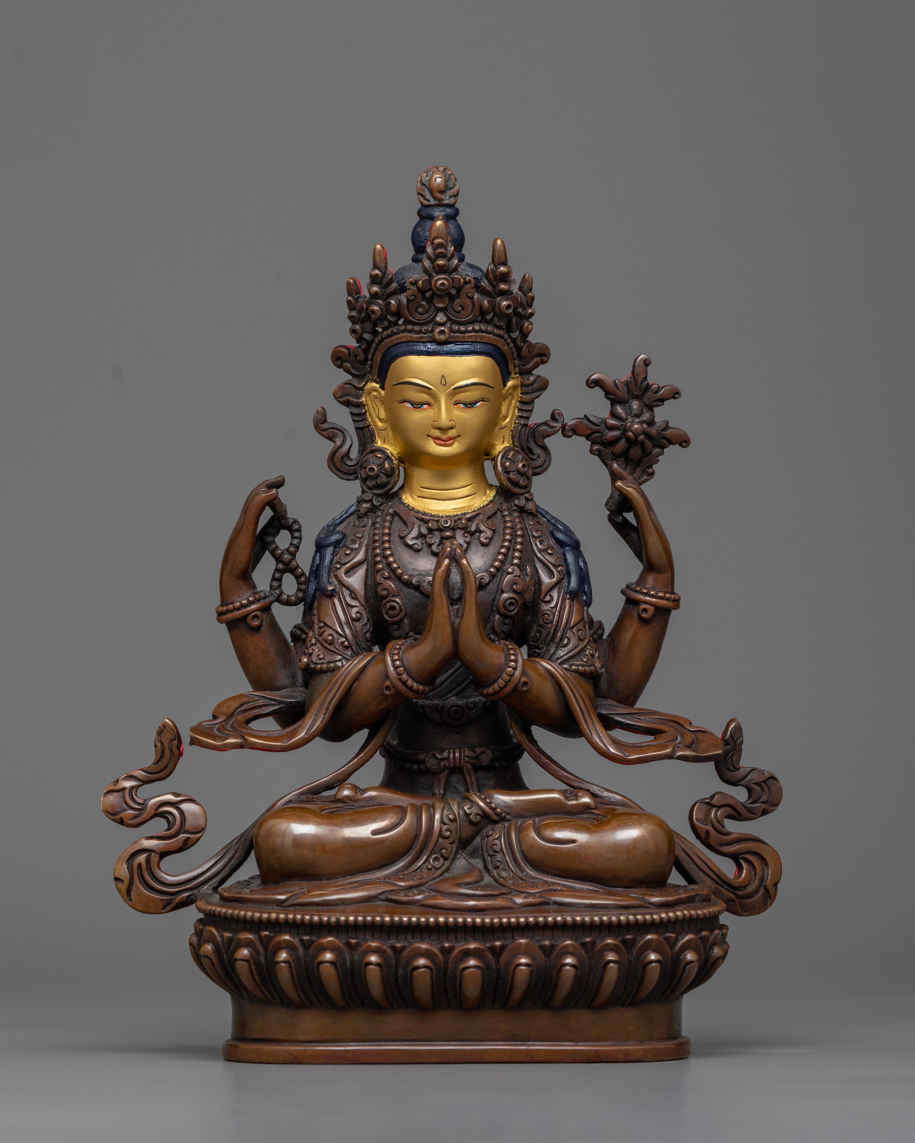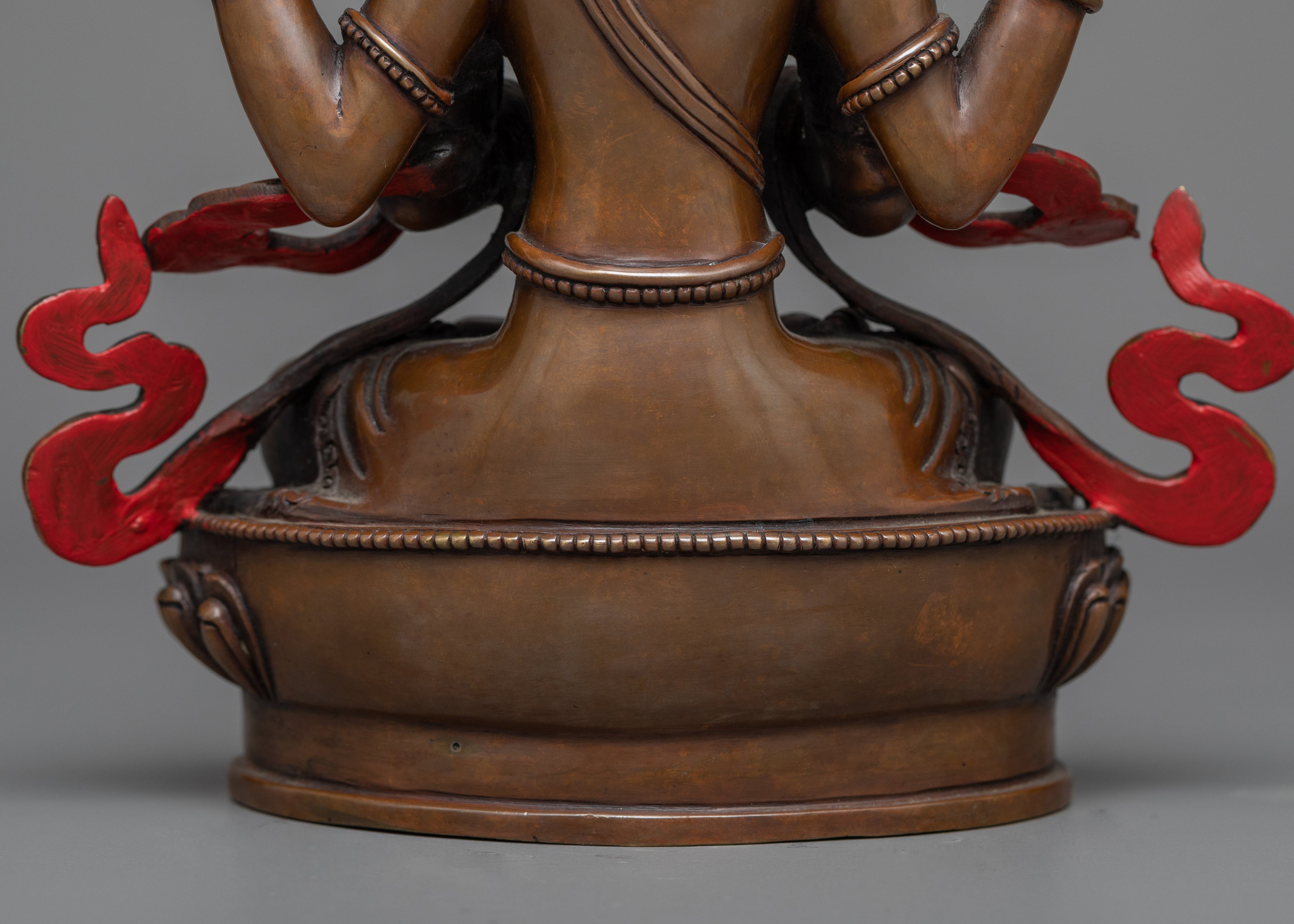 Four-Armed Chenrezig Copper Sculpture - Symbol of Boundless Love and Empathy