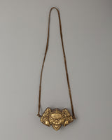 The sides of the symbol are decorated with cloud-like swirling motifs that reflect heavenly energy and spiritual transcendence. These themes represent the movement of spiritual forces between the terrestrial and divine realms, emphasizing the mask's function as a conduit for more incredible energy. Together, the design features of this Ghau Box provide a potent symbol of spiritual defense and purification, making it a valuable and culturally significant relic. Whether worn or displayed, it serves as a protective amulet and a reminder of the continuous spiritual war between good and evil.