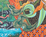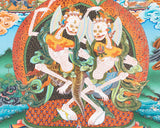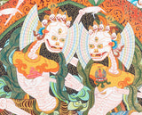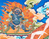Our Thangka depicts the Chitipati Mahakala in superb resolution. This Thangka is embellished with 24K gold and beautiful natural stone colors.